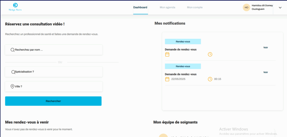 Je cherche mon médecin et j'accède à son agenda pour fixer un rendez-vous.